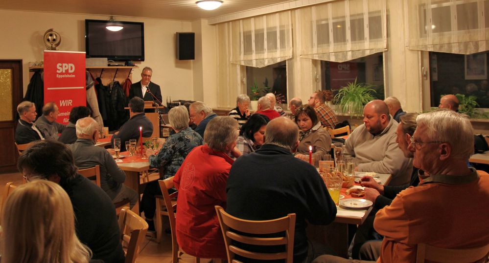 Schon seit vielen Jahren laden die Eppelsheimer Sozialdemokraten ihre Genossinnen und Genossen sowie interessierte Bürger zum Neujahrsempfang in die Sporthallengaststätte ein. Als Ehrengäste konnte Vorsitzender Hans H. Brecht an diesem Freitagabend (15.1.) den rheinland-pfälzischen SPD-Landtagsabgeordneten Heiko Sippel, die Eppelsheimer Ortsbürgermeisterin Ute Klenk-Kaufmann (FWG) mit ihrem Gatten und die Vorsitzende des SPD-Verbands Alzey-Land, Angela Sauer, im Kreise der Anwesenden begrüßen.
