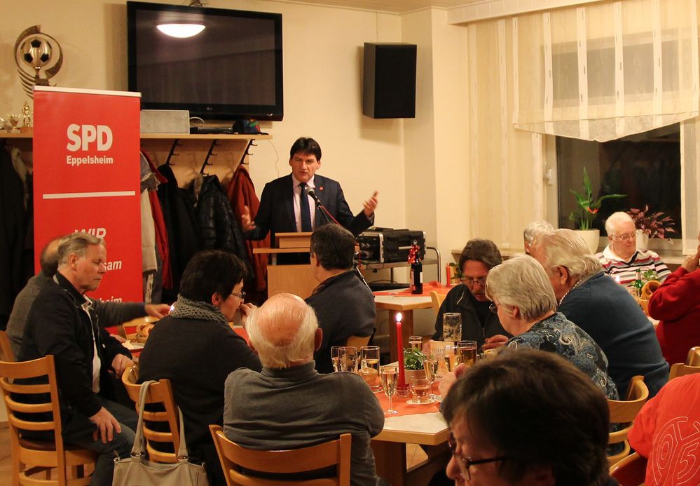 Neben einem Rückblick auf die ehrenamtlichen Aktivitäten vor Ort reflektierte Brecht als Fraktionsvorsitzender auch das kommunalpolitische Engagement der Sozialdemokraten im Gemeinderat und nahm auch Stellung zu bundespolitischen Themen. Nach seiner Neujahrsansprache, die auf der Homepage der SPD Eppelsheim (www.spd-eppelsheim) nachgelesen werden kann, informierte MdL Heiko Sippel über die aktuelle, vor allem von der Flüchtlingskrise bestimmten Landespolitik und lobte die gute Zusammenarbeit mit den überaus aktiven Genossinnen und Genossen in der Ur-Rhein-Gemeinde. Ihm folgten noch Grußworte der Ortsbürgermeisterin und der SPD-Verbandsvorsitzenden.